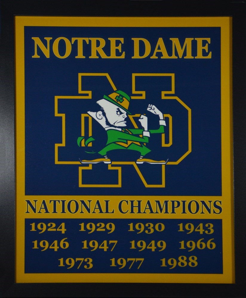 18 x 22 Framed photo featuring Notre Dame's National Championship years in Football. This is a Must Have for any Notre Dame Football Fan.