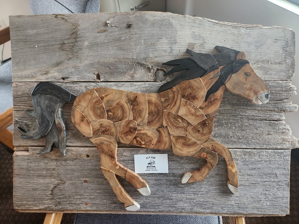 Amazing artwork, talent and skill went into designing this hand crafted wooden horse hanging!