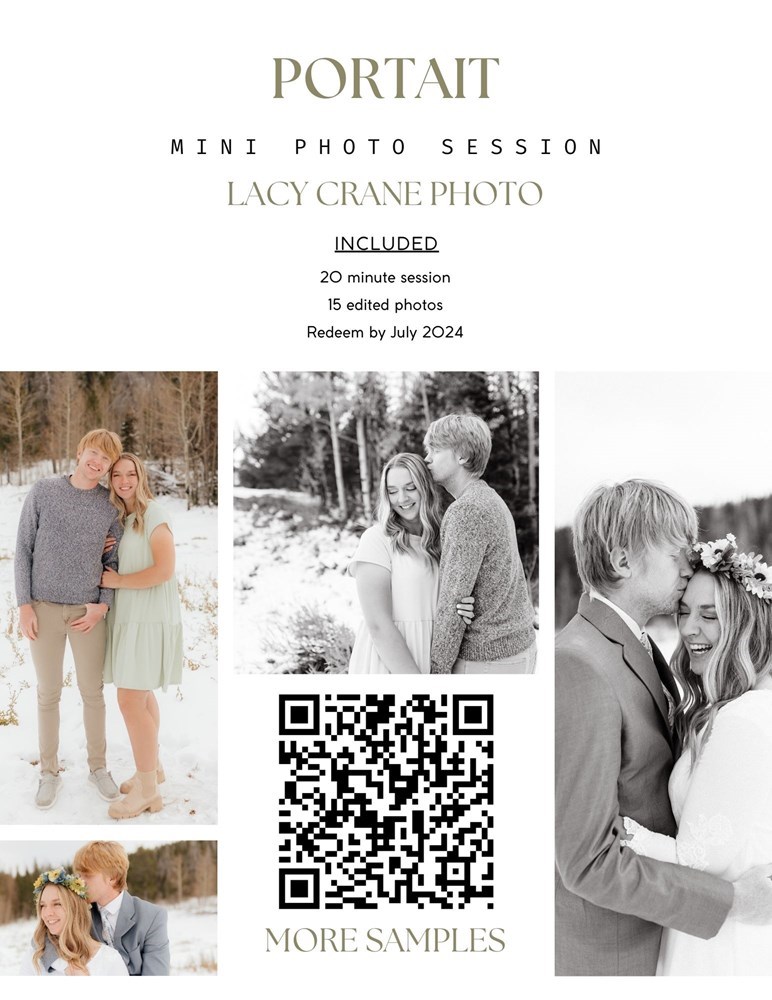 Capture your family's memories with a 20 minute mini session with photographer Lacy Crane. You will receive 15 edited photos as part of the package.